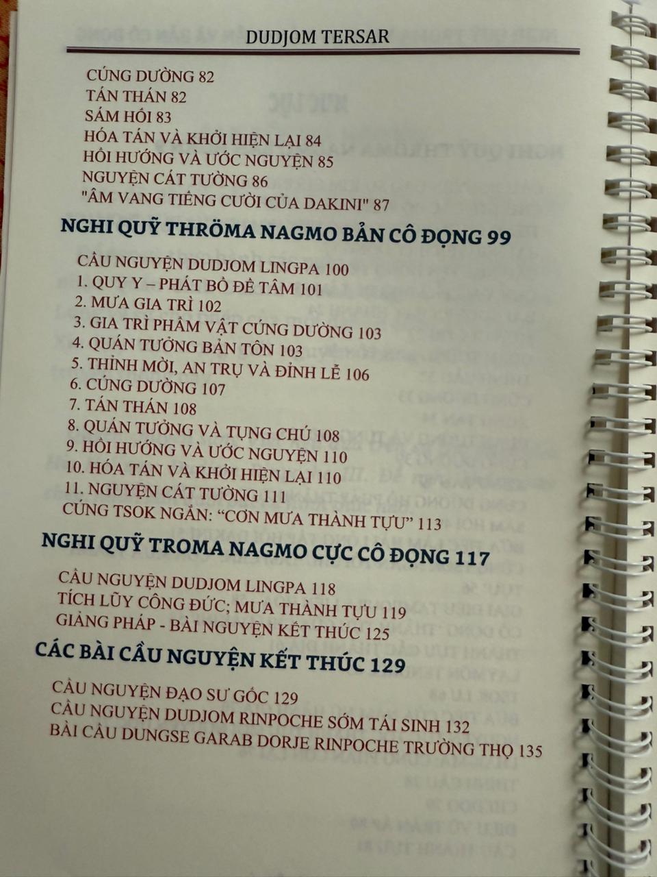 Nghi quỹ tinh yếu này được trình bày dưới dạng thuận tiện nhất để thực hành, bao gồm tất cả những bài nguyện cần thiết dành cho các hành giả chuyên thực hành pháp Dakini Troma Nagmo, mang tên: